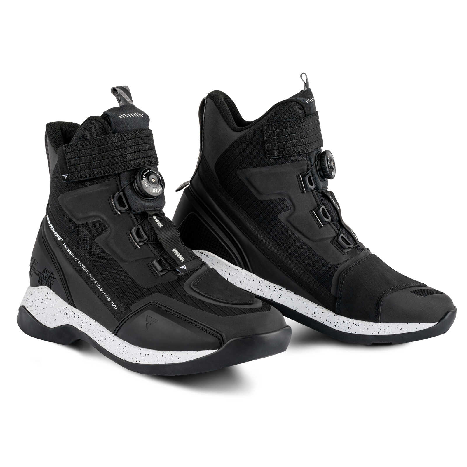 Подошва TAKESHI изготовлена из сочетания прочной резины и очень удобной структуры EVA, благодаря этому ботинки очень устойчивы и не ограничивают подвижность. Ваша безопасность также обеспечивается стелькой из полипропилена, которая делает подошву жесткой с боков, и усиленной пяткой, лодыжкой и пальцами. Когда вы путешествуете в ботинках TAKESHI, вам не нужно беспокоиться о поездке после захода солнца. Благодаря большой площади светоотражающих элементов вы будете видны в любое время и в любых условиях. Для еще большего комфорта, Мотокеды TAKESHI оснащены дышащим материалом, специальной ластовицей для правильного положения ноги и прорезиненной зубчатой накладкой. А система крепления ATOP обеспечивает идеальную посадку в течение всего дня. Его можно отрегулировать одной рукой, не снимая перчатку! С моделью TAKESHI, доступной в 3 цветовых вариантах, вам не придется выбирать между защитой, комфортом и стилем.