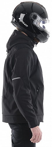 Толстовка для езды на мотоцикле по городу. Основной материал Softshell с мембраной, сетка 3D spacer mech - в зонах повышенного потоотделения. Стильно выглядит и при этом защищает. Арамидные ткани в местах расположения защиты. Встроенная съемная защита Sas-tec (Германия): плечи и локти в базовой комплектации, защита спины предлагается дополнительно. Подклад – сетка. Отстегивающийся капюшон на молнии, сзади капюшон пристегивается к спинке, чтобы не мешал при движении.