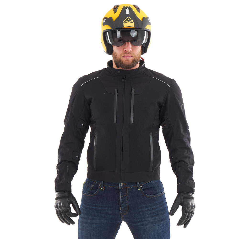 Куртка сшита из материалов компании Texland&Nexko – мирового лидера по созданию тканей для мотоиндустрии. На прочный материал куртки нанесены высокотехнологичные пропитки, защищающие её от воды, грязи и ветра. Установлена защита плеч и локтей от немецкого производителя SAS-TEC, сертифицированная СЕ EN 1621-1:2012. Перфорированные 3D-протекторы из вязкоупругой мягкой пены отличаются высокой амортизацией и не теряют защитных качеств после падений. Под защиту спины предусмотрен карман. Для обозначения размеров защиты вставлена пенка.