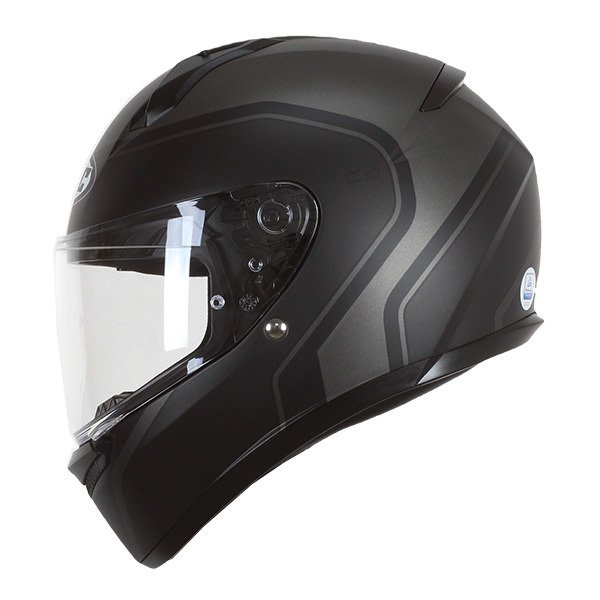 C10 сделан из смеси поликарбоната и ABS-пластика. Угол бокового обзора увеличен на 5 миллиметров с каждой стороны. На визоре есть крепление для пинлока. Поскольку шлем максимально бюджетный, сам пинлок в комплект не входит. Многоканальная система вентиляции ACS с тремя впускными и двумя выпускными отверстиями сделана по образцу гоночных шлемов MotoGP, так что в жару вам будет прохладно.