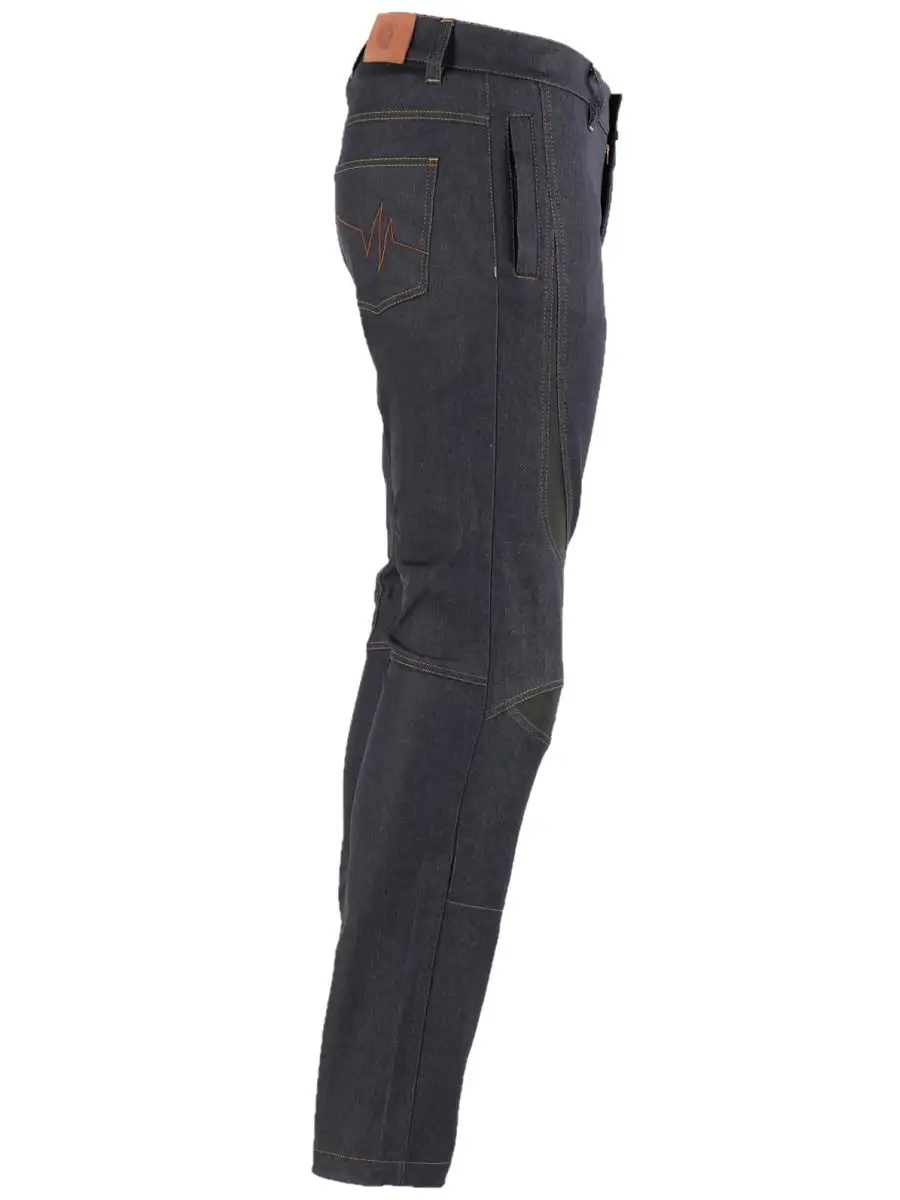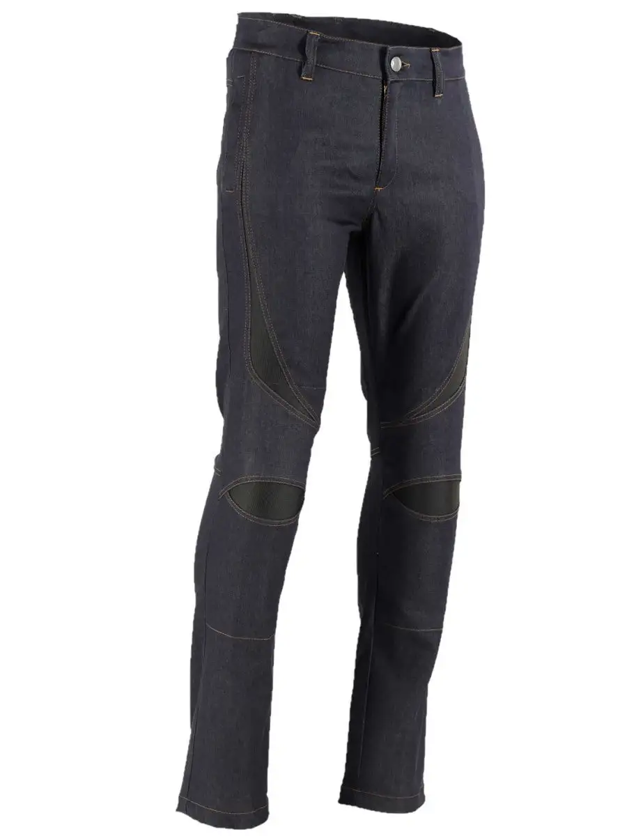 Арамидная ткань полностью покрывает тазовый отдел, как с передней так и с задней стороны. Коленный сустав защищен арамидной тканью и защитной вставкой Memory PU от CC PROTECTОRS, более того наши конструкторы усилили боковые швы арамидными лентами, что значительно повышает прочность шва на разрыв. Защитные вставки в бедрах повышают уровень Вашей защищенности. Защита колена регулируются по высоте, а так же ее можно вынуть в любой момент, вывернув для этого джинсы и вынув коленные вставки из кармана. Стильные вставки из тянущейся и ультрапрочной ткани Mazant способствуют комфортной посадке и добавляют удобства при поездках на мотоцикле.
