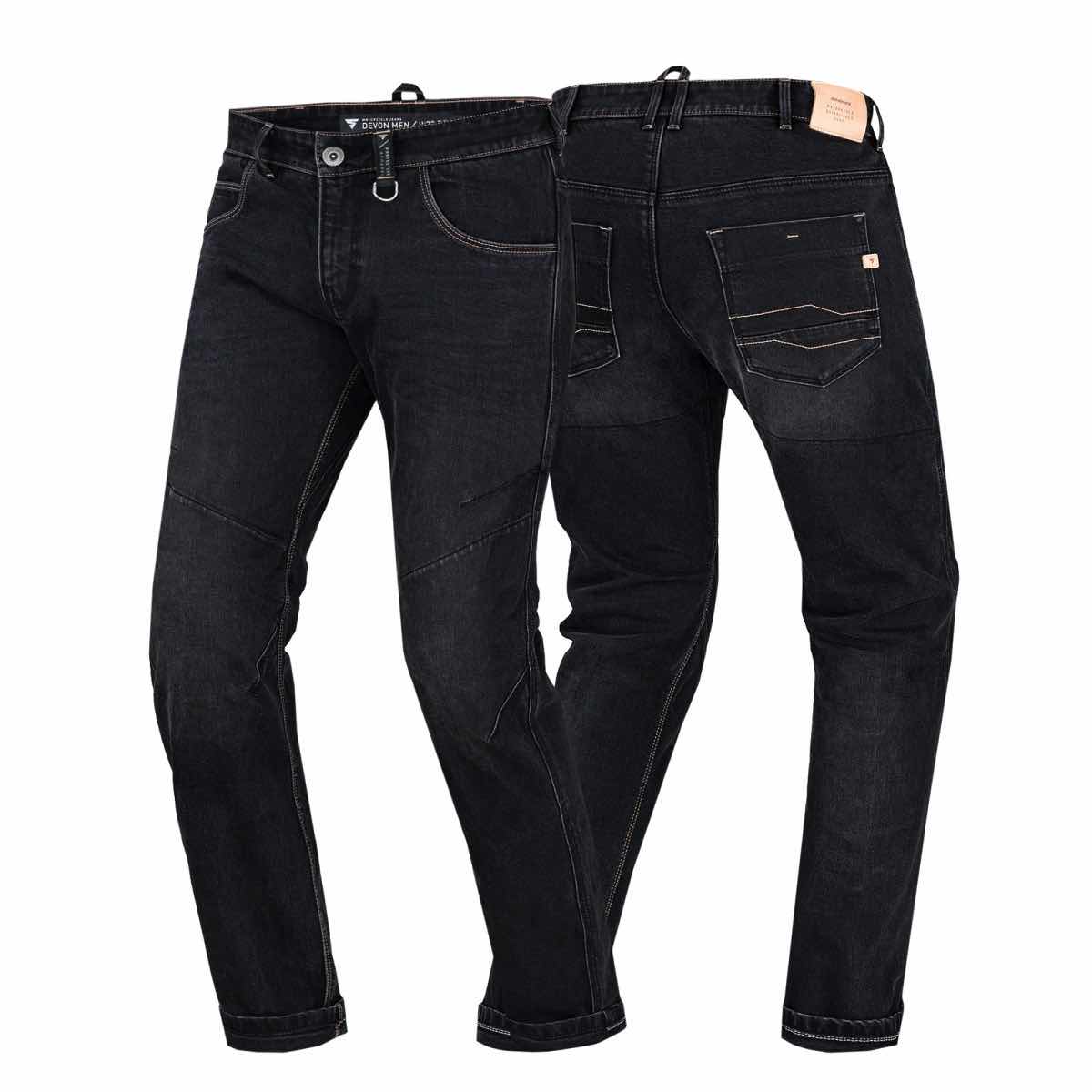 Внутренний защитный слой из материала FiberQL™ гарантирует высокую стойкость к истиранию и приятное ощущение прохлады. С FiberQL™ и комплектом воздухопроницаемых протекторов AirForce™ от SHIMA (колени уровень 2 , бедра уровень 1) вы можете чувствовать себя в полной безопасности. Защита коленей имеет двухступенчатую регулировку высоты и вставляются изнутри. Кроме того, вы можете оснастить свои мотоджинсы защитой копчика (продается отдельно). Мотоциклетные джинсы DEVON с вытачками, формирующими колени, и бесшовной областью промежности Comfort+™. Светоотражающие элементы в нижней части штанин сделают вас заметнее на дороге. Соединительная петля позволяет сочетать их с мотоциклетной курткой.