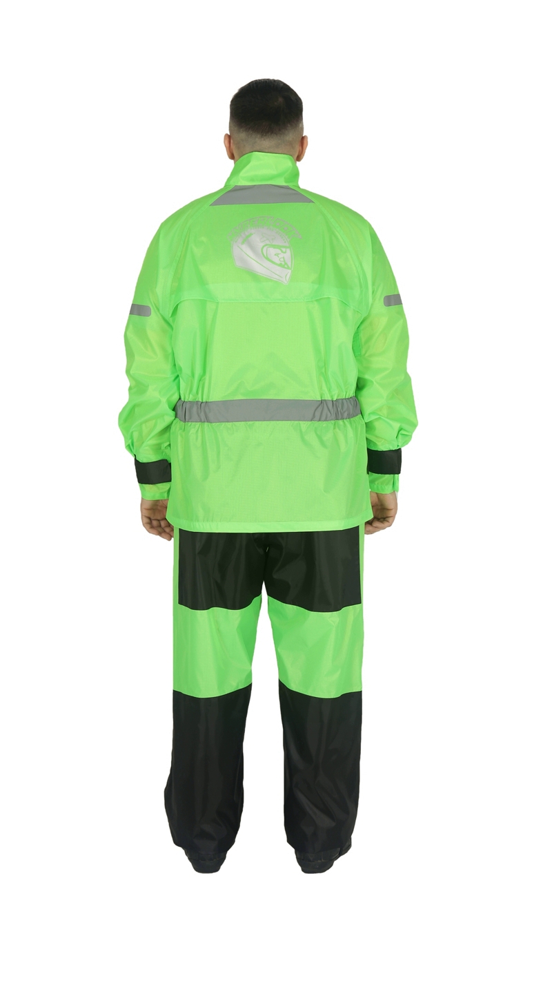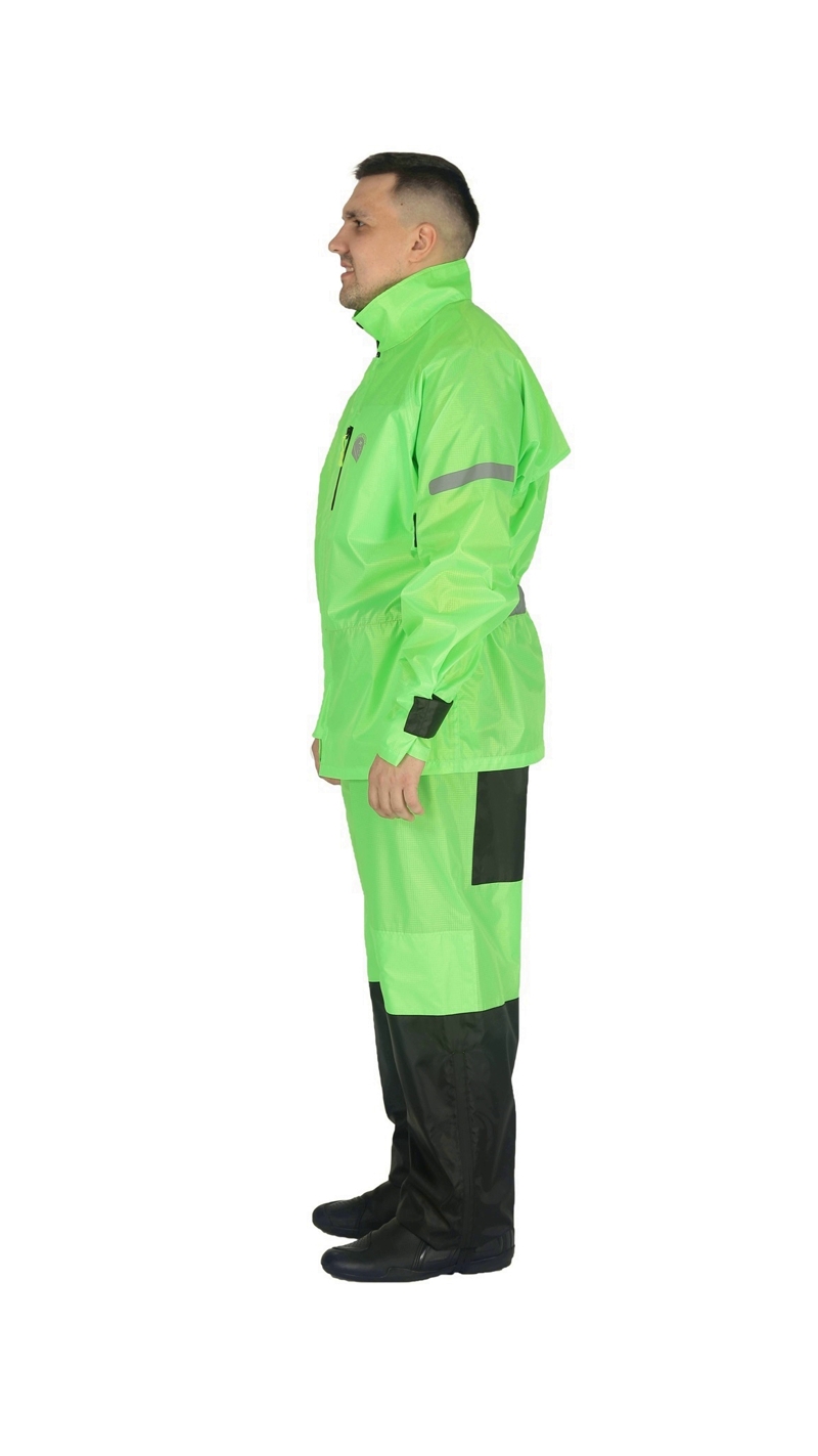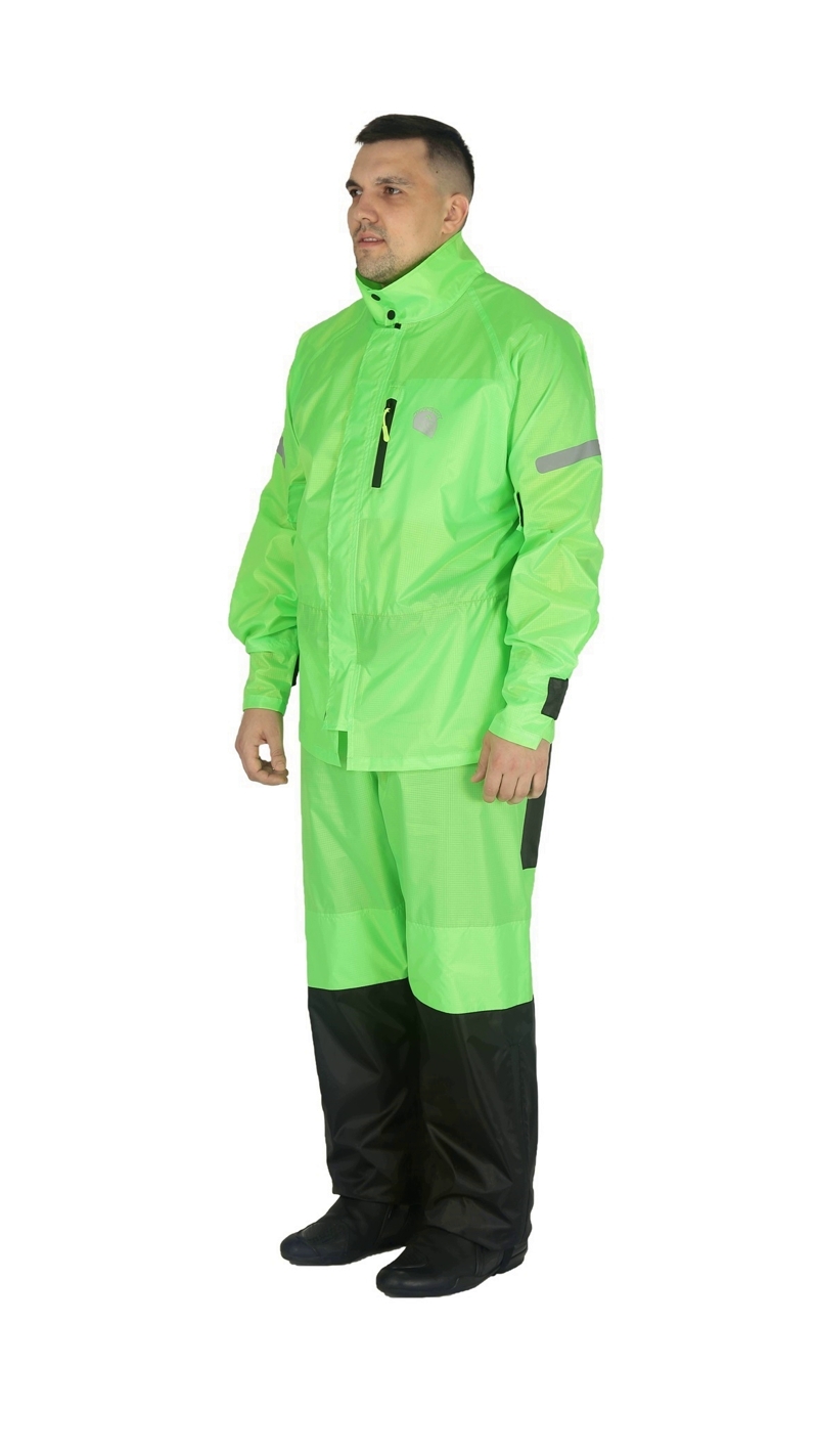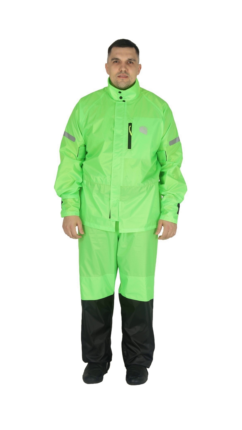 Hyperlook Titan легкий, прочный, удобный раздельный дождевик незаменимый аксессуар в путешествии или поездке по городу. Дождевик сшит из прочного ПВХ материала, все швы проклеены термоизоляционной лентой, так же дождевик имеет вентиляционные отверстия для циркуляции воздуха в лопаточной части. ДождевикHyperlook Titan продуман до мелочей, яркая ткань, армированные нити, регулировочные стропы предплечья и кисти, регулировка резинки по длине ботинка, светоотражающие элементы и логотип компании Hyperlook на спине, который значительно повысит Вашу пассивную безопасность при езде ночью. Но главной особенностью дождевика Hyperlook Titan является то, что есть возможность пристегнуть куртку к штанам.
