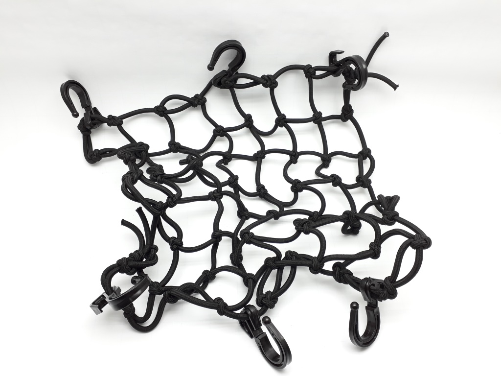 Качественная багажная сетка с 6 крючками предназначена для крепления шлема, рюкзака, канистр, личных вещей и т.п. на хвосте мотоцикла, багажниках квадроцикла или снегохода.