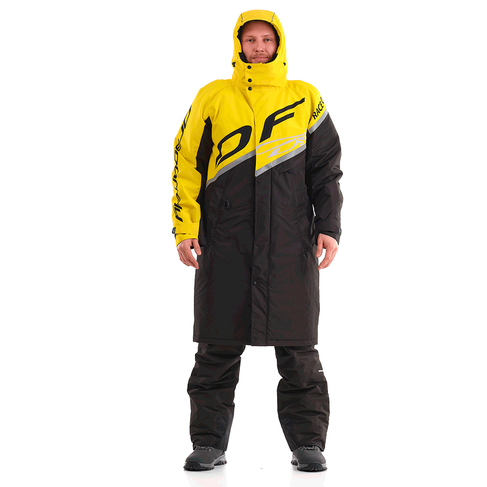 Передний клапан на магнитах для дополнительной защиты от ветра. Имеет три кармана. Внешние глубокие на молнии - для рук. Ширина и глубина позволит положить руки в карман, не снимая снегоходных перчаток. Внутренний нагрудный на молнии для документов. Большой утепленный капюшон с козырьком и регулировками. Высокий ворот. Утяжки на рукавах. Центральная молния двухзамковая, по длине позволяет удобно передвигаться и сидеть. Для данной модели возможен индивидуальный пошив.