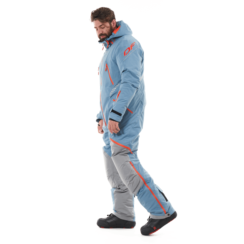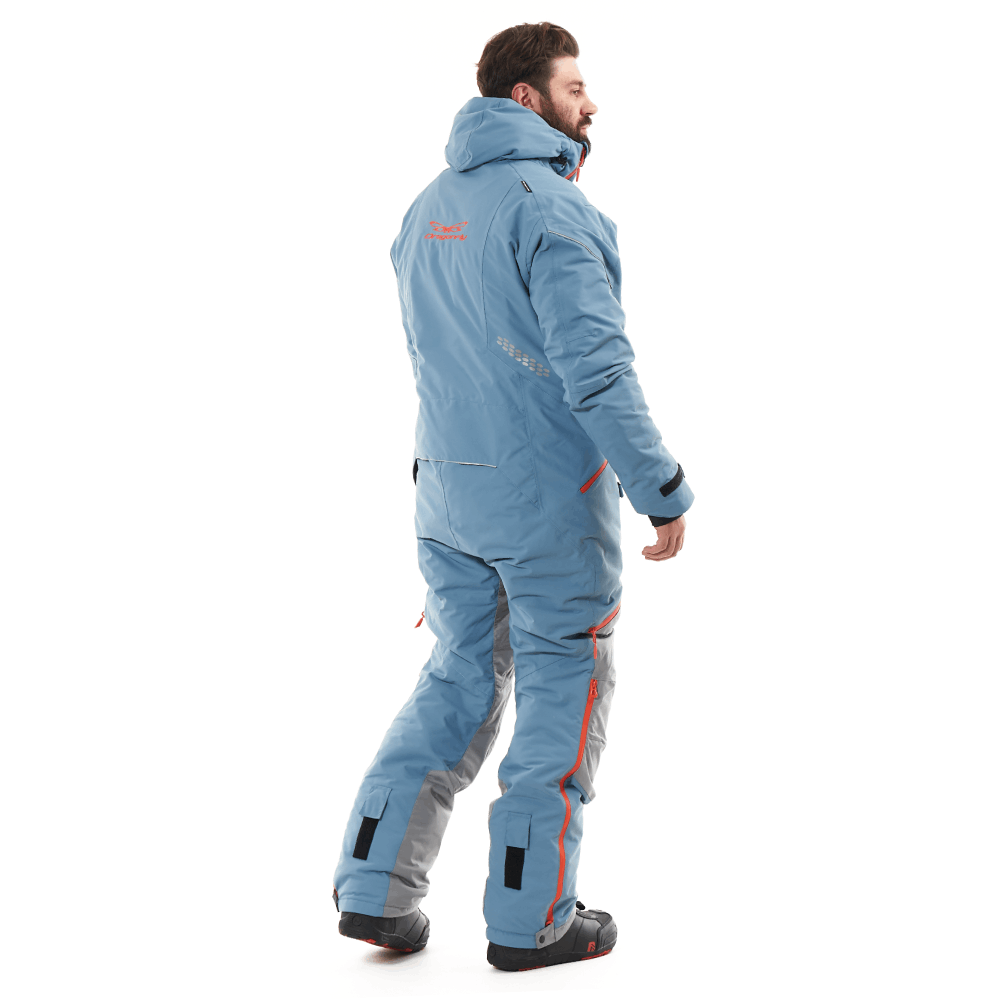 Функционал комбинезона тщательно продуман и зарекомендовал себя среди снегоходчиков и сноубайкеров. Светоотражающие элементы есть со всех сторон. Семь карманов покрывают все потребности райдера, в том числе для ски-паса, телефона, и теплые, для согревания рук. Есть удобная петля под тангенту рации и кольцо D-ring для ключа горного снегохода. Центральная молнии с тремя замками: открывается сверху и снизу. Несъемный капюшон с двойной утяжкой. Для удобства приема пищи и воды во время стоянки – есть расширения на воротнике, защищает от ветра в расстёгнутом виде. В помещении можно снять верхнюю часть комбинезона и воспользоваться регулируемыми лямками - подтяжками.