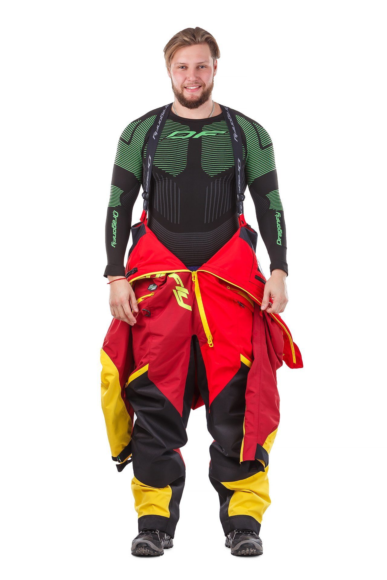 Штанины регулируются по длине. Удобны для надевания обуви - двухзамковая молния до колена, внизу защищена патой на 2-х кнопках. Внутри снегозащитные юбки на ботинки с силиконовой резинкой и крючком для зацепа к шнуркам ботинок.
