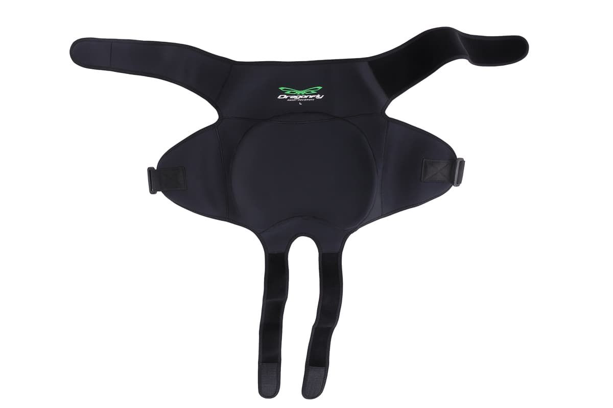 Имеет регулируемые застежки к ногам и на поясе. Удобна при посадке.