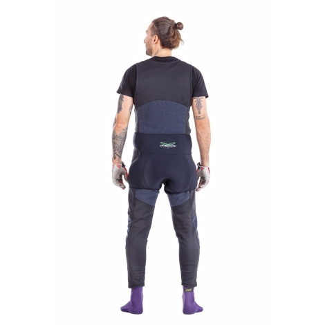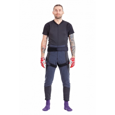 Имеет регулируемые застежки к ногам и на поясе. Удобна при посадке.